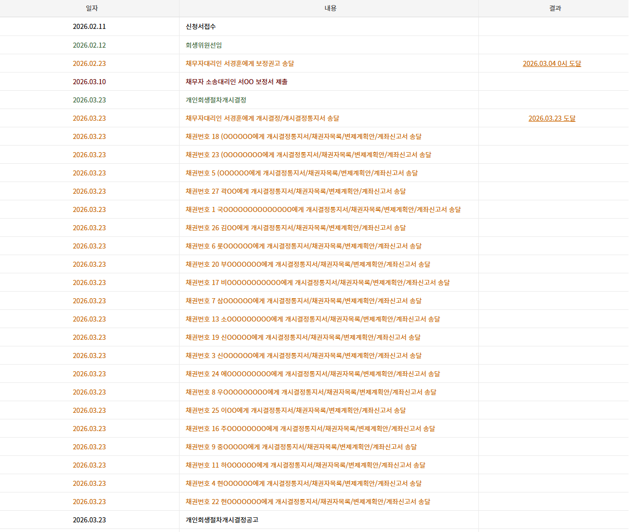 1심 기각결정을 뒤집고 즉시항고를 통해 파기환송된 이후, 재심리를 거쳐 단 1개월 만에 총 채무 약 3억 2천만 원 중 4% 변제율로 개시결정을 이끌어냈습니다.